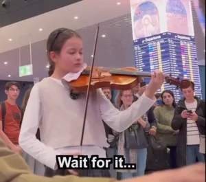 What had been a busy, noisy airport became a space of calm and admiration, as the crowd stood mesmerized by the virtuosity of the young performers. Their flawless execution of Winter was full of emotion, capturing the icy chill of the season, while also showcasing their exceptional musicality.Each note was sharp and resonant, and their control of the violins was well beyond their years. The younger sister, though visibly smaller, displayed a level of precision that seemed impossible for someone of her age, complementing her older sister’s technique perfectly.