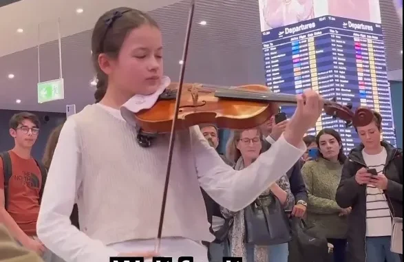 As they began, travelers and airport staff alike were immediately drawn in by the rich, powerful sound emanating from the violins. The older sister, at 11, took the lead with her commanding yet delicate bowing, while her younger sister, at 8, followed suit with remarkable skill and poise.Their synchrony and mastery of the complex piece, originally composed by Antonio Vivaldi, was astounding for such young musicians. As the sisters played, the energy around them shifted.
