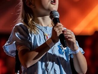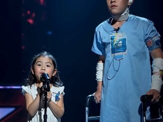 On a stage where dreams collide with courage, a tiny girl stepped forward—barely tall enough to reach the microphone, wrapped in bandages, her small face […]