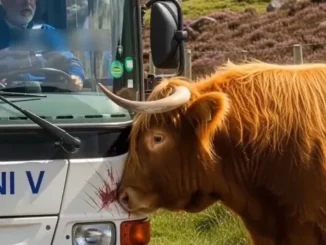 In a surprising and heartwarming incident in the Scottish Highlands, a brave Highland bull became an unlikely hero after stopping a bus in a move […]