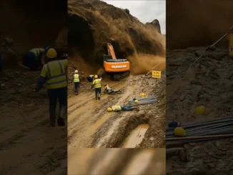 This video shows the incredible moment a quick-thinking excavator operator used their machine to shield fellow workers from a sudden and dangerous landslide at a […]