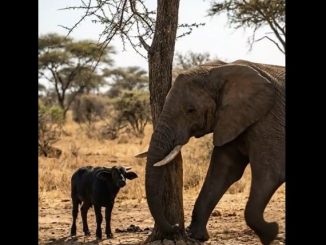 In the quiet heart of the forest, a little buffalo calf walked closely beside her mother, following every step with trust and devotion. Morning light […]