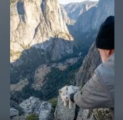 High in the mountains, a tiny white puppy clung desperately to a narrow cliffside ledge, its small paws scrambling for purchase above a dizzying drop. […]