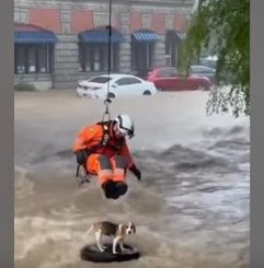 Heroic Flood Rescue! Beagle Found Clinging to Floating Tire