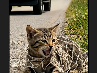 On the side of a quiet road, barely visible among debris and weeds, a tiny kitten lay trapped in a tangled net. Every movement only […]