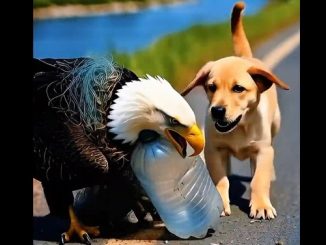 The bald eagle lay motionless on the ground, its powerful wings tangled tightly in a fishing net. A crushed plastic bottle was stuck around its […]