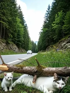 The mother cat, though shaken and exhausted, was alive. She looked up at Jack with wide, grateful eyes as he gently cradled her in his arms. He carefully placed her on the ground next to her kitten, who had been watching anxiously from a safe distance. The two cats huddled together, their tails entwining for comfort, both of them shaken but unharmed. Jack let out a sigh of relief. His heart swelled with a quiet sense of pride—he had saved them.