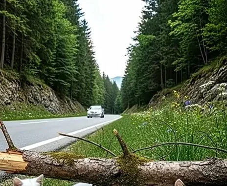 Wiping his hands on his shirt, Jack walked toward the noise, following the trail of distress until he reached the edge of his property where the woods began. There, tangled beneath the heavy branches of a fallen oak tree, was a mother cat and her kitten. The tree, felled by a recent storm, had landed across a small clearing where the two had been hiding. The mother, a thin gray tabby, was trapped beneath the heavy branches, her body pinned by the weight of the tree. Her eyes were wide with panic, and her cries were heart-wrenching. At her side, her tiny kitten, a fluff of orange fur, mewed pitifully, unable to escape the danger.