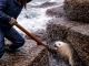 Step by step, it placed the tree trunk into the muddy pit.