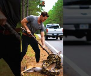 When the last coil finally loosened, the deer fell to the ground, weak and gasping for air. The man quickly dragged it a few feet away as the python retreated into the underbrush, defeated but alive.