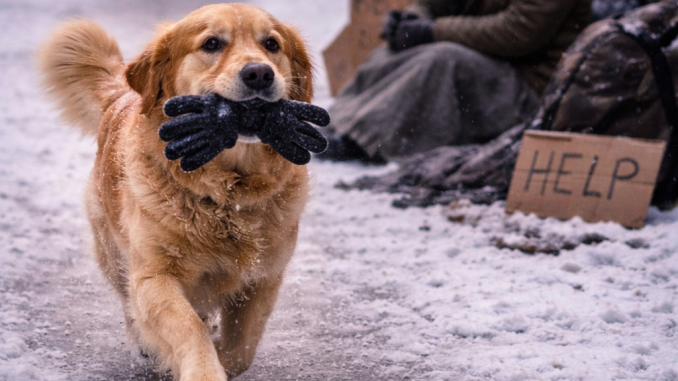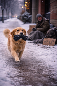 A Dog Found a Pair of Gloves in the Snow… What It Did Next Melted a Homeless Man’s Heart