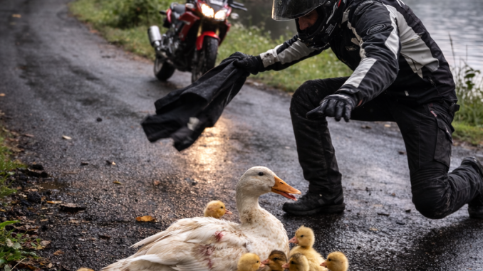 The ducklings cried out, confused and terrified, running in small circles near the edge of the road. The lake behind them remained silent. The forest watched.