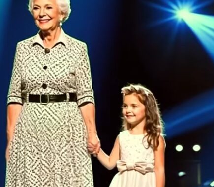 The grandmother, elegant with silver hair and a calm smile, looked down at the little girl beside her. The child’s eyes sparkled with excitement, her small hand gripping her grandmother’s tightly. Together, they took their places at the center of the stage, ready to create a moment that would be remembered forever.