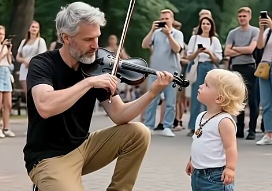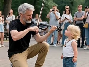 When the song ended, the crowd erupted into applause, not just for the music, but for the magic of the moment. A man with a violin and a little boy who dared to sing reminded everyone that sometimes, the most touching performances are born out of spontaneity and shared courage.
