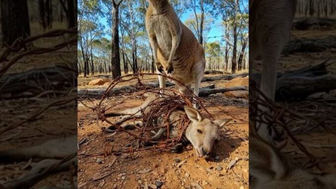 In the vast Australian outback, where silence is broken only by the wind and the rustling of dry grass, a kind man came across something unusual. Hidden beneath a bush was a tiny baby kangaroo, trembling, weak, and alone. Its mother was nowhere to be seen — most likely lost to the harsh dangers of the wild. The fragile joey’s big eyes seemed to plead for help.