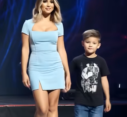 As they took their place at the center of the stage, the air grew heavy with expectation. The mother, elegant and poised in a soft blue dress, glanced down at her little boy with a reassuring smile. He, in turn, stood tall and fearless, as though he carried a secret known only to them. Their silent exchange spoke louder than any introduction — they were about to take the audience on a journey where reality would bend, and hearts would be touched.