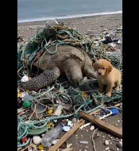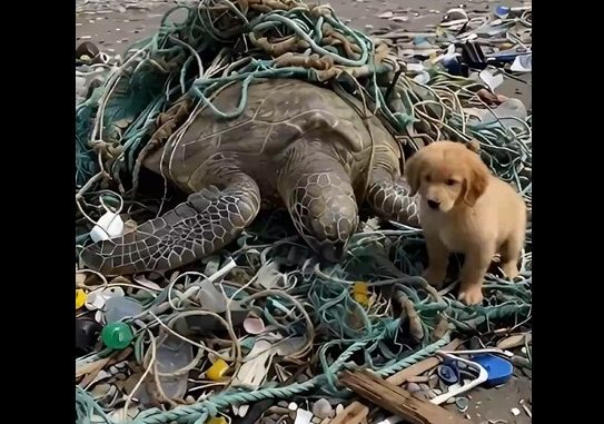 It was a moment of hope and pure connection—a reminder that courage and compassion can appear in the smallest of forms. On that polluted beach, one tiny puppy became a hero, and a sea turtle was given a second chance at life.