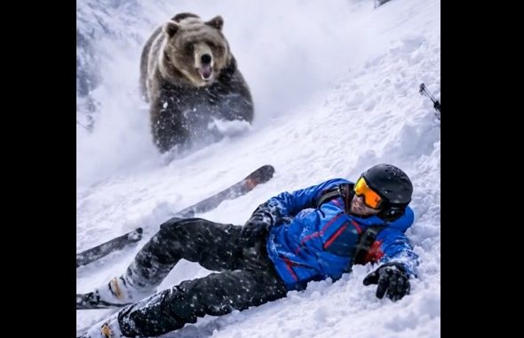 The skier’s heart began to race. He was certain this was the end. Frozen with fear, he watched the massive animal approach him. But instead of attacking, the bear stopped and looked at him calmly, almost as if it understood that the man was in trouble.