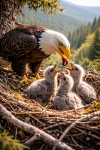 The snake lifts its head, hissing, as the shadow of the eagle falls over it. In a flash of feathers and wind, the eagle strikes. Talons grip tightly around the snake’s body, lifting it away from the tree and far from the nest.