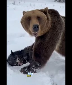 A lone man came across a rare and dangerous sight: a black wolf trapped and injured, pinned down by a powerful bear. The man knew the risk. One wrong move could cost him his life. But instinct took over.