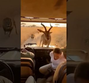 What began as a peaceful ride through a quiet reserve turned into a breathtaking and unforgettable encounter when a curious deer did something almost unheard of it climbed directly onto the safari jeep. Tourists froze in disbelief, unsure whether to be frightened, amazed, or simply honored by such a rare and gentle interaction. In a world where most animals avoid humans, this deer’s brave and unexpected move left everyone speechless.
