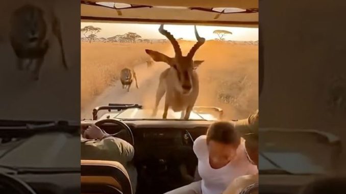 Deer Escapes Pack of Lions… By Jumping Onto a Safari Jeep! Deer vs Lions: The UnbelievableEscape