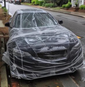 I woke up the next morning to a nightmare: all of the tape was wrapped around my automobile. It covered every square inch. I said, “Are you kidding me?!?” in shock. Who acts in that way?