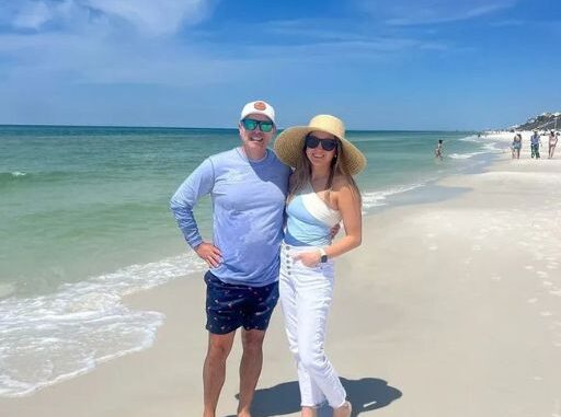 A picture of him and his wife, on a beach in the Bahamas. Fancy resort, fruity drinks in hand, big grins on their faces. The caption? “Much-needed getaway! Living our best life!”