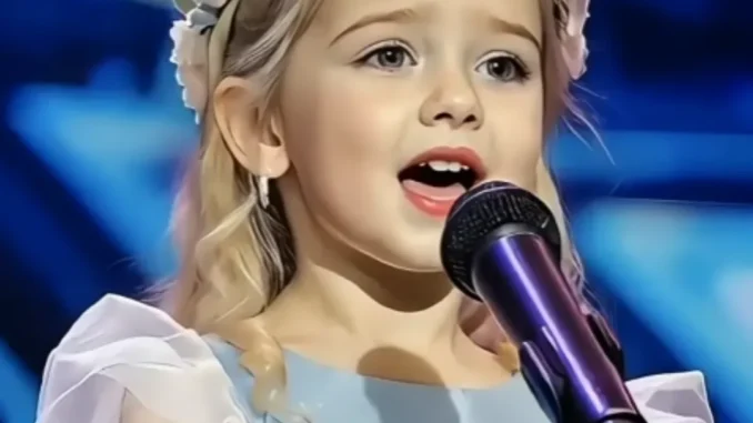 Under the glowing lights of the America’s Got Talent stage, a scene unfolded that felt more like a fairytale than a television performance. A little girl, no older than five or six, walked confidently into the spotlight, wearing a sky-blue dress with delicate tulle sleeves and a crown of soft pink and blue flowers resting gently on her head. She looked like she had stepped straight out of a bedtime story — innocent, radiant, and angelic.