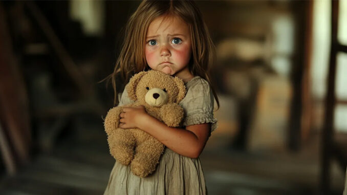 Evie looked up at them hesitantly, her small hands gripping the bear tighter. “I… I don’t know,” she murmured.