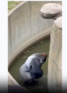 What was meant to be a fun day at the zoo quickly turned into a heart-stopping moment for one visitor and his beloved dog. The man was walking near the gorilla enclosure when, in a sudden accident, his dog slipped from his grip and tumbled into the moat surrounding the gorilla habitat.