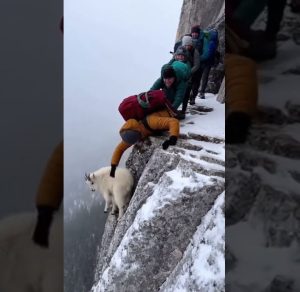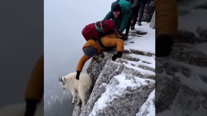 What began as a normal day for a group of hikers quickly became a life-or-death mission when they stumbled upon a terrified baby goat stranded on a narrow cliff edge. What followed was a rescue filled with tension, bravery, and emotion that touched everyone who saw it.