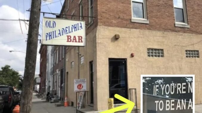 While Victor Fiorillo went out for a drink at night, he decided to go to the Old Philadelphia Bar in the City of Brotherly Love. He wanted a beer and some good company, but when he saw the sign etched on the window, it gave him pause. Nevertheless, he went inside and voted with his dollars by buying a beer, and that’s when a man spoke up so the whole bar could hear him.