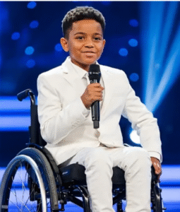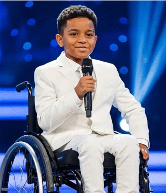 On one such extraordinary night, a young boy in a wheelchair, armed only with a microphone and unwavering faith, delivered a performance that moved the entire theater to tears—and to their feet.