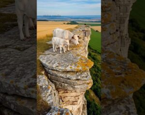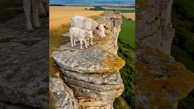 A mother cow had slipped on the wet ground and found herself trapped on the edge of a steep cliff. One wrong move and she would tumble into the rocky abyss below. Her legs trembled, her breathing quickened, and panic set in.
