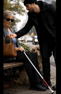 The dog gently picked up the stolen bag and carried it back to the woman who had lost all hope just moments before. Tears filled her eyes as she knelt down, hugging her unexpected hero.