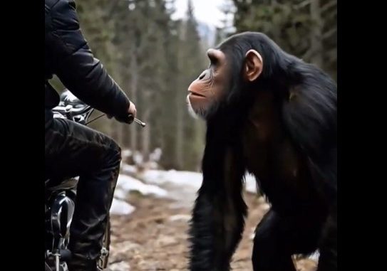 Working together, the man and the motorcyclist carefully helped the injured man to safety, moving him away from the icy slope and checking that he wasn’t severely hurt. The chimpanzee stayed nearby, watching closely to make sure help was completed.