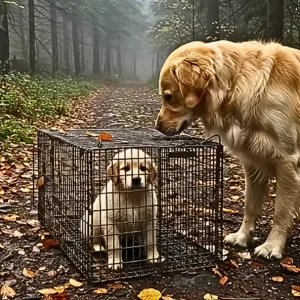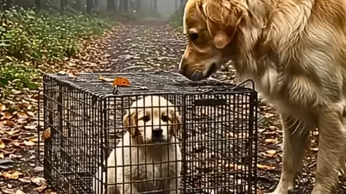 Without a second thought, Tom sprang into action. He knew that this puppy couldn’t be left there to suffer any longer. He approached the cage slowly, speaking softly to the dog to try and calm his fears. The puppy, though frightened, seemed to recognize that someone was there to help him. With great care, Tom opened the cage door, coaxing the dog out as gently as possible. The little golden retriever, weak from lack of proper care, wobbled on his feet but took a few tentative steps toward Tom, as though he instinctively knew that he was about to be saved.