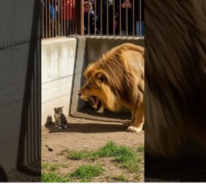 It started like any other day at the reserve. Visitors were watching the lions from a safe distance when suddenly, a tiny kitten appeared out of nowhere. Nobody knew how it got there, but before anyone could react, the little furball began walking fearlessly toward the lion’s den.