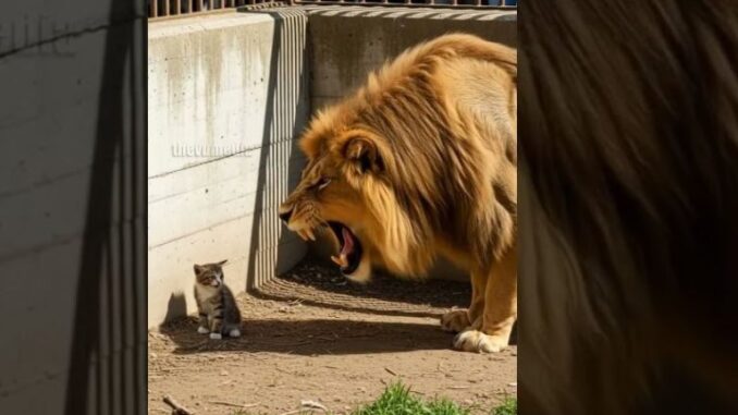 The lion, massive and powerful, turned his head slowly as the kitten stepped closer. The crowd held their breath, waiting for the roar, the paw, the strike. But instead, something magical happened.