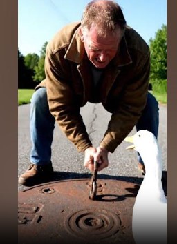 As the man stepped out of his car, he realized why the duck mom had blocked his path. Several of her tiny ducklings had slipped through the metal drain cover and fallen into the water pit below. Their faint, frightened chirps echoed from inside the darkness.