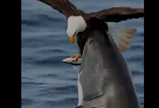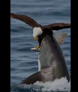 In a breathtaking display of nature’s drama, a lone eagle soared high above the shimmering ocean, its sharp eyes scanning the waters for the perfect catch. Spotting a glimmering fish just beneath the surface, the eagle spiraled down in a breathtaking dive. With talons outstretched, it snatched the fish in a precise, powerful grip, lifting it triumphantly from the waves.