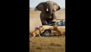 On a golden afternoon in the Serengeti, where herds of elephants often roam peacefully across the plains, one dramatic encounter reminded everyone that survival in the wild is never guaranteed. A young elephant, separated from its herd, faced the terrifying jaws of a pride of lions. What happened next shocked both onlookers and wildlife experts: the elephant fought back—and won.