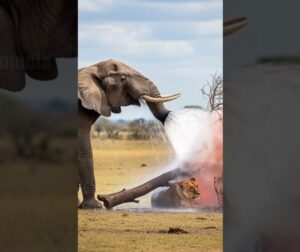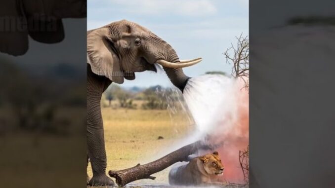 Witnesses say the elephant stomped a clear route through the fire and then stood guard, shielding the lioness from the advancing flames. Using its powerful trunk, it splashed nearby water onto the dry grass, slowing the fire’s spread just long enough.