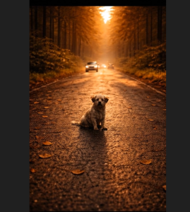 Cars passed quickly. Headlights flashed over him. Wind from speeding vehicles shook his fur, but he didn’t move much.