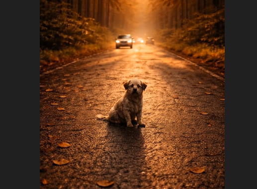 Cars passed quickly. Headlights flashed over him. Wind from speeding vehicles shook his fur, but he didn’t move much.