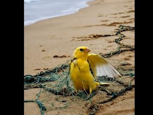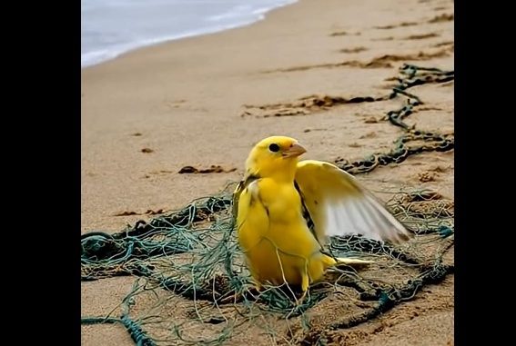 A helpless bird was trapped in the sand and seaweed, flapping weakly and crying for help. Its wings were stuck, and every attempt to escape only made it more exhausted. The bird’s soft cries blended into the sound of the wind, unheard by most.
