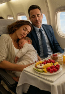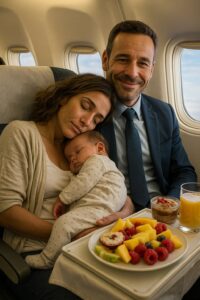 Sitting beside her was a man in a navy suit, early 30s, with sharp features softened by kind eyes. He looked completely out of place in economy, like someone accustomed to penthouses and boardrooms. He smiled gently, hands resting on his lap.
