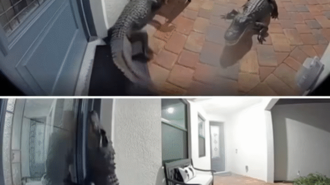 Captured on a Ring doorbell camera, the bizarre footage shows a pair of massive alligators making their way up a quiet family’s front porch. At first, it looks like a scene from a wildlife documentary.