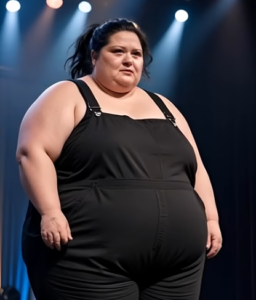 She walked onto the stage slowly, her steps deliberate yet heavy with unspoken weight. Dressed in simple black overalls, her presence carried an unexpected gravity that silenced even the faintest whispers in the audience. She paused at the center of the stage, taking a deep breath, her trembling fingers clutching the microphone stand like an anchor.
